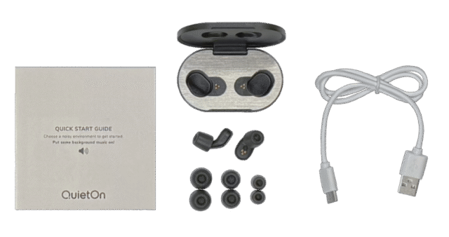 - Two full sets QuietOn 4 Active Noise Cancelling Sleep Earbuds